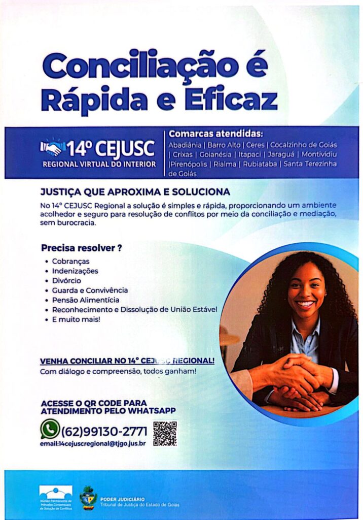 - Abrangência Regional: O 14º CEJUSC atende diversas comarcas (como Abadiânia, Goianésia, Jaraguá, entre outras), e a articulação com a Prefeitura e a Câmara visa facilitar o acesso da população local a esses serviços virtuais.